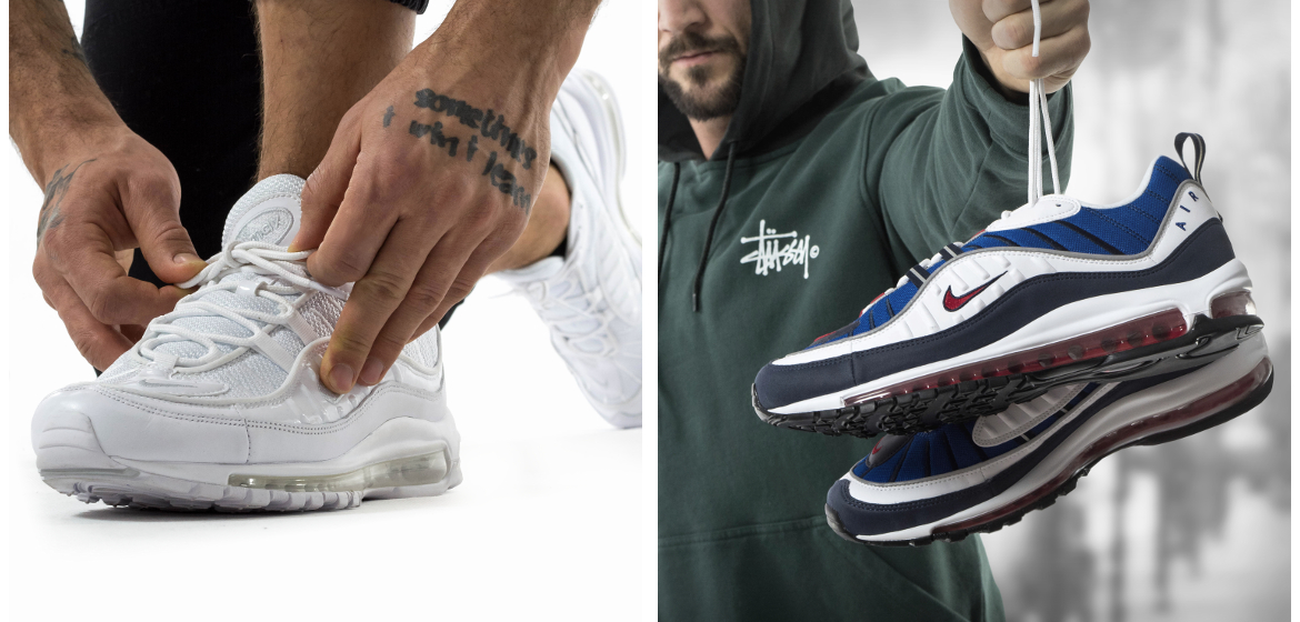 W tym roku Nike obchodzi dwudziestolecie modelu Air Max 98. Z tej okazji również w naszej ofercie znajdziecie ten niesamowity model. Cholewkę buta zaprojektował Sergio Lozano który odpowiedzialny był również za ponadczasowe AIr Max 95. Model przez zastosowaną podeszwę przypomina dość znacząco swojego poprzednika AIr Max 97. Cechą która odróżnia modele jest projekt cholewki który zdecydowanie odbiega od minimalistycznego projektu poprzednika. But w momencie premiery zdobył spore uznanie zwłaszcza wśród sportowców. Poduszka Air przechodząca przez całość buta zapewnia doskonałą amortyzację nie tylko podczas biegania ale również wygodę podczas codziennego użytkowania. Prawdziwa gratka dla miłośników sportowego retro oraz wygodnych butów!