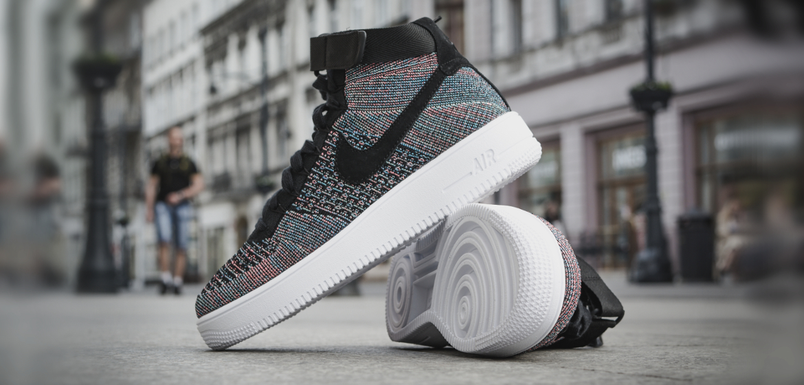 Nike Air Force 1 Ultra Flyknit Mid back / pink / blue (817420-602) - Klasyka Nike z 1982 roku w świeżym wydaniu. Dzięki cholewce wykonanej z Flyknitu i "odchudzonej" podeszwie jest to najlżejsza wersja tego modelu.