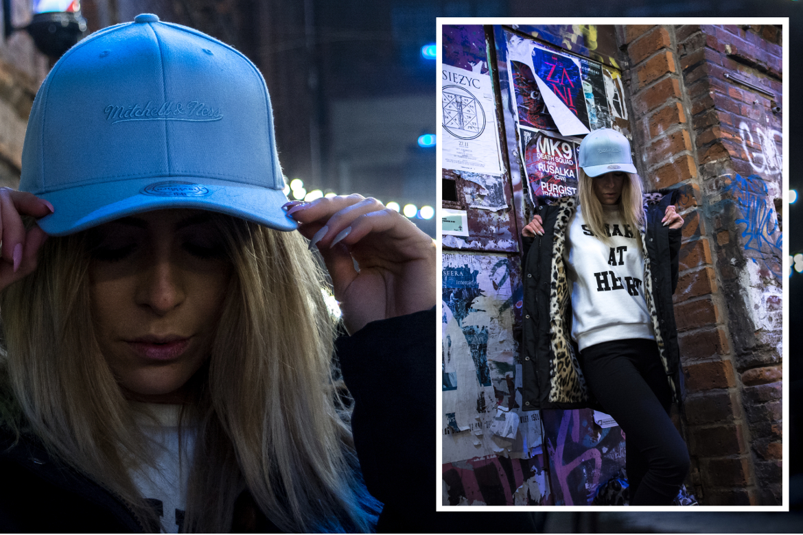 Na głowie klasyczna czapka z wygiętym daszkiem od Mitchell and Ness. Jedna z wielu nowości jakie zawitały do naszego sklepu.