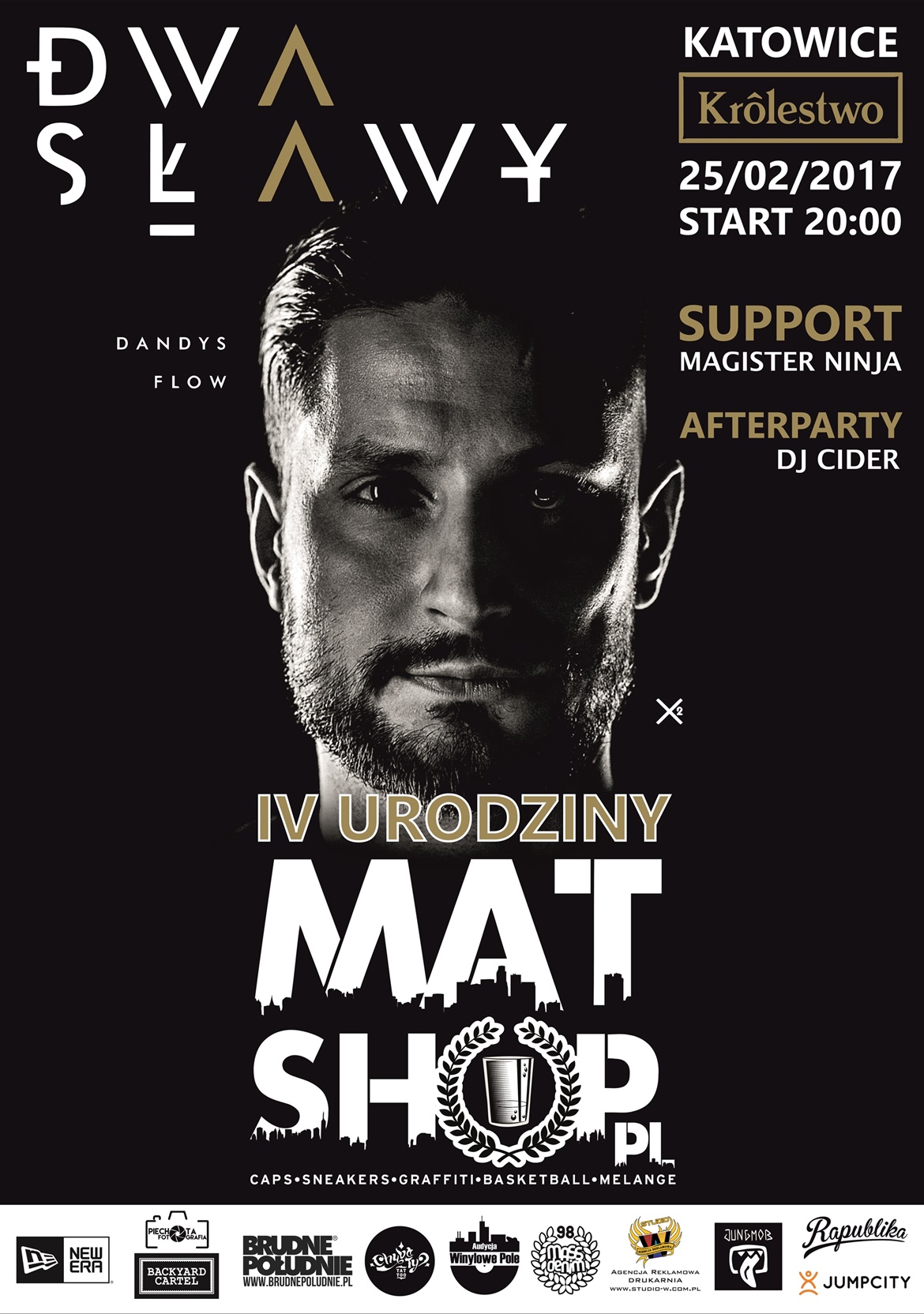 Dobra nie rozkminiajmy już tego co było, a wróćmy do tego co jest i co będzie ! Ano będzie się działa, gdyż 25 lutego w katowickim klubie Królestwo będziemy obchodzili swoje IV Urodziny. Wraz z nami te urodziny będą obchodzili Dwa Sławy, którzy wpadną z nowym materiałem Dandys Flow, poza tym na supporcie zagrają nasi dobrzy znajomi Magister Ninja (też mają coś nowego do zaprezentowania) oraz DJ Cider, którego poznaliśmy podczas turnieju Mitchell&Ness na zeszłorocznym Hip Hop Kempie. To on nakręci afterparty, wiec impreza będzie trwała dosyć długo, więc dobrze się wyśpijcie !