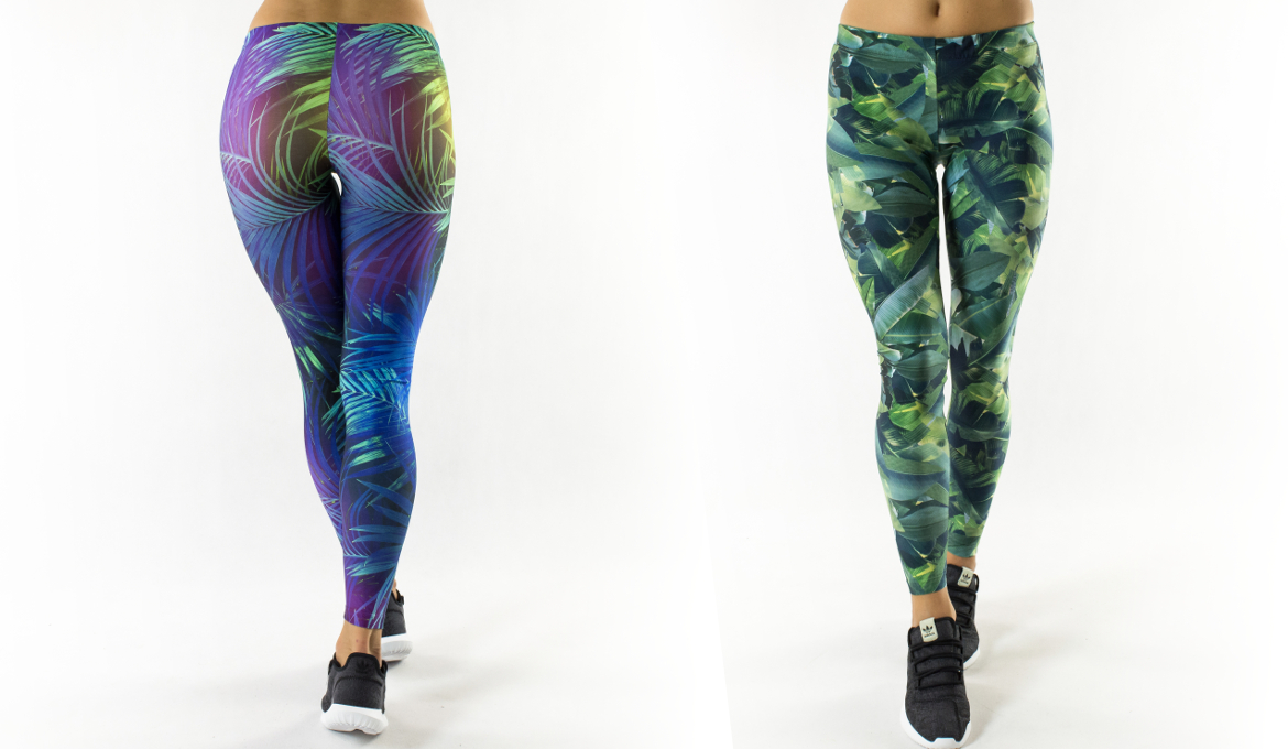 Wygodne legginsy w intensywnej tropikalnej kolorystyce.