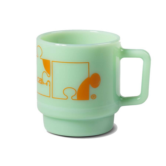 The Assemble Glass Mug is hand-made in Japan, in collaboration with the company Olde Milke-glass. It has a stackable design and is detailed with a seasonal graphic print..