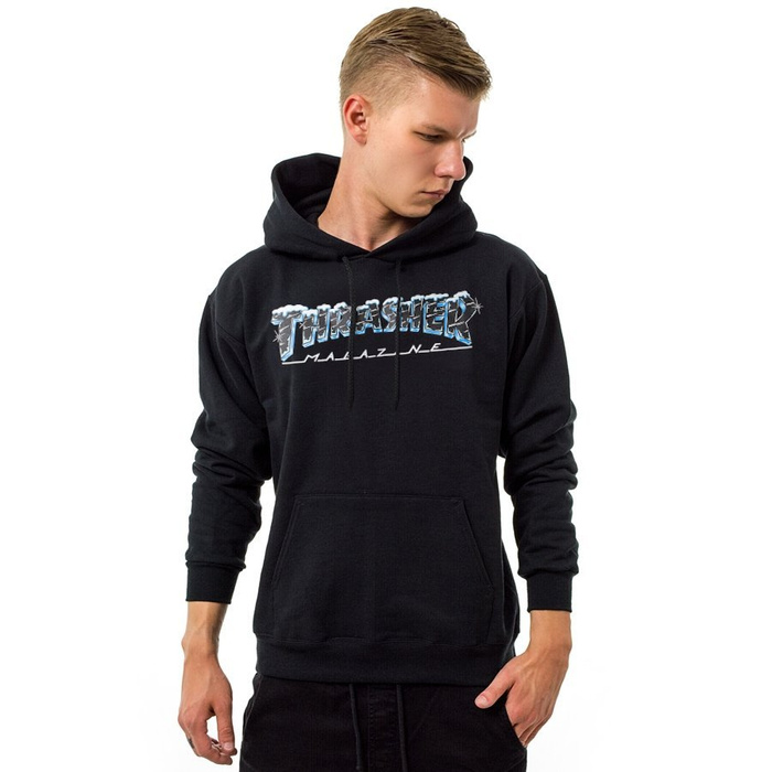 Z przodu bluzy duży nadruk w formie logotypu Thrasher Magazine będącego lodowym klimacie