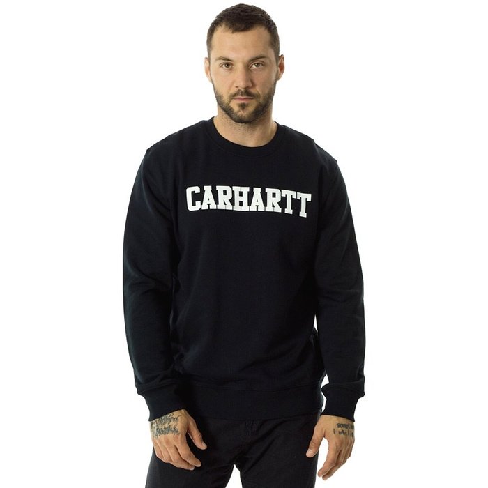 Wykonana ze świetnej jakości bawełny bluza amerykańskiej marki Carhartt WIP. Front ozdobiony dużym nadrukiem w postaci logotypu marki. Rękawy oraz dół wykończone elastycznym ściągaczem.